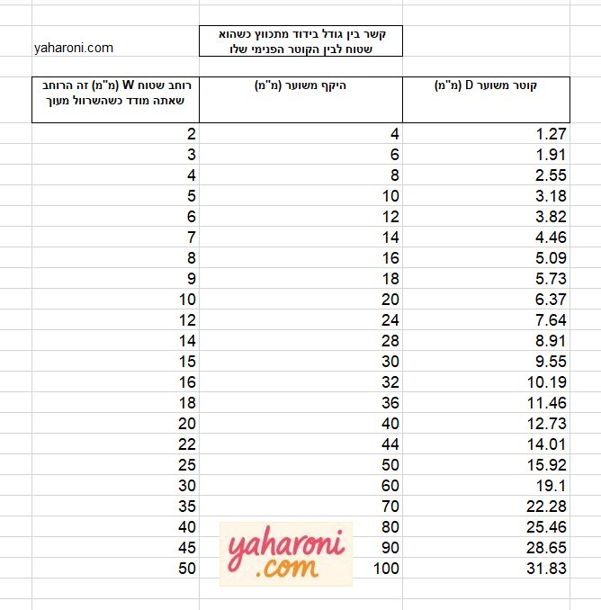 לבין הקוטר הפנימי שלו