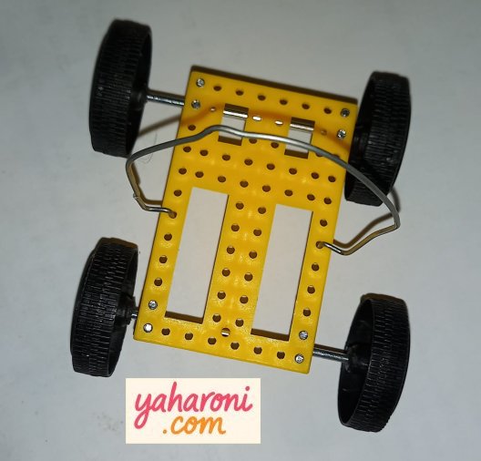 - 2 מוטות מתכת דקים (צירים) – עוברים דרך הגלגלים כדי לאפשר להם להסתובב.